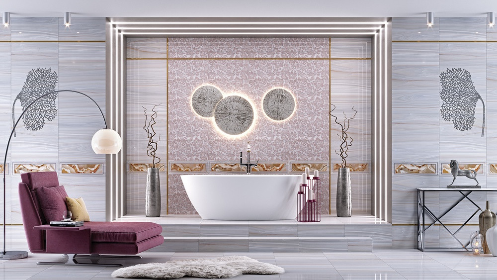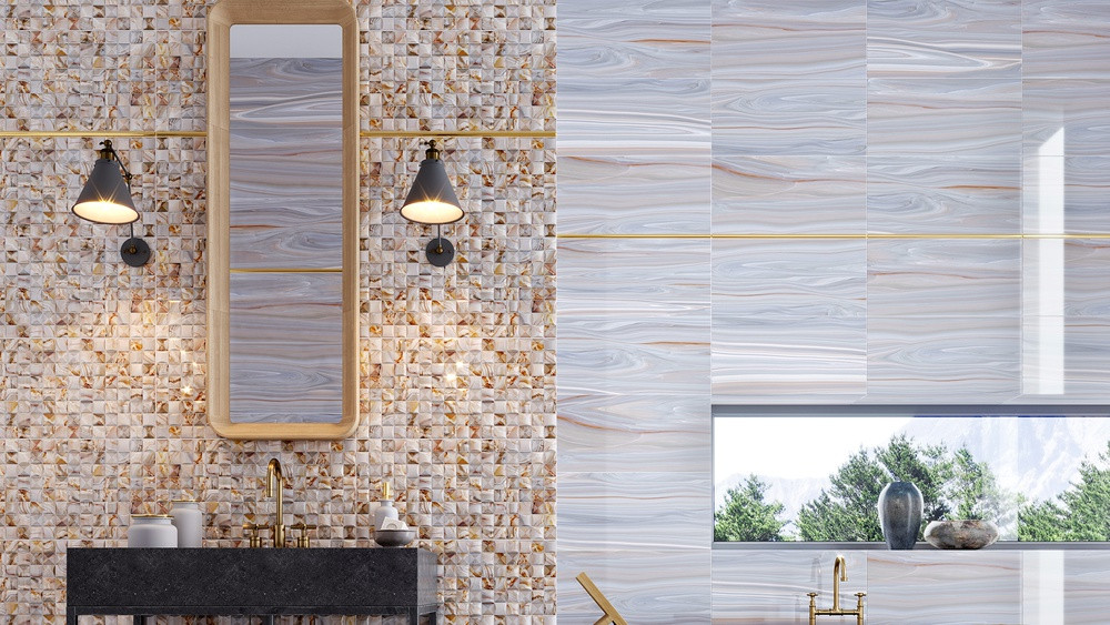 Плитка 90x60 Мари-Те глянцевая серый Нефрит-Керамика
