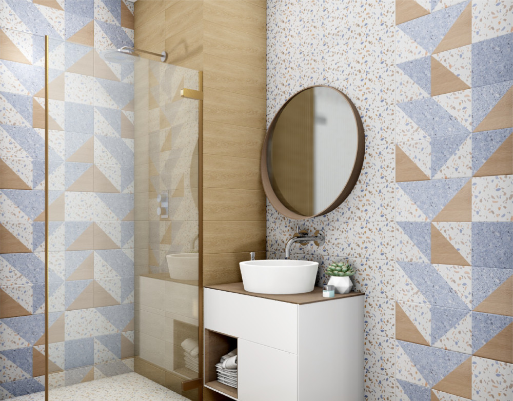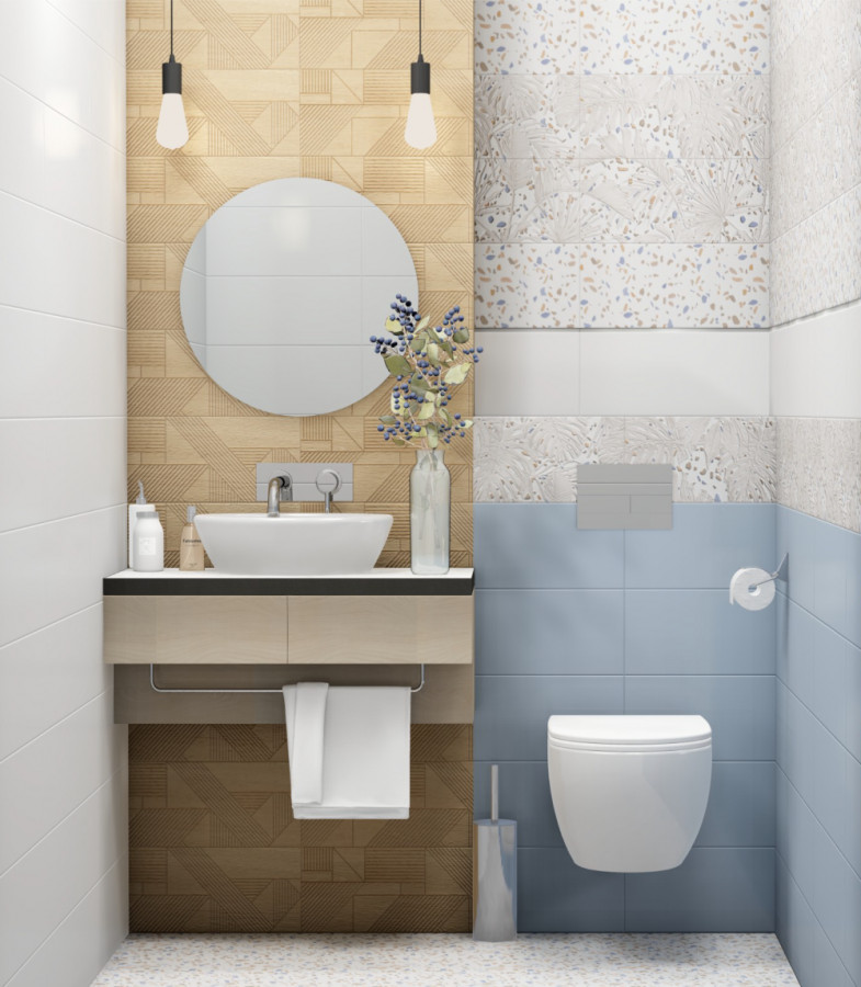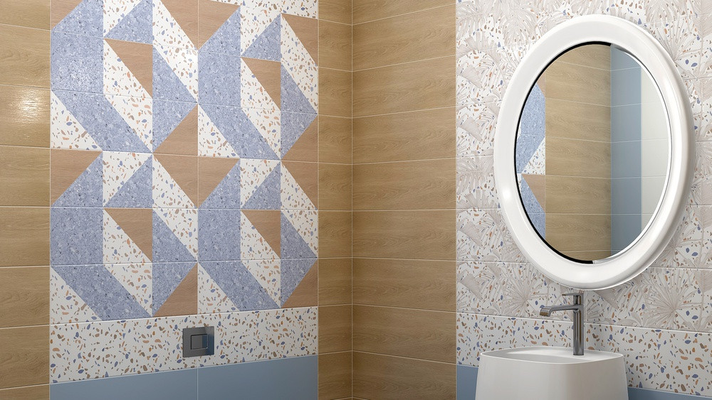 Плитка 60x20 Террацио матовая белый синий Нефрит-Керамика