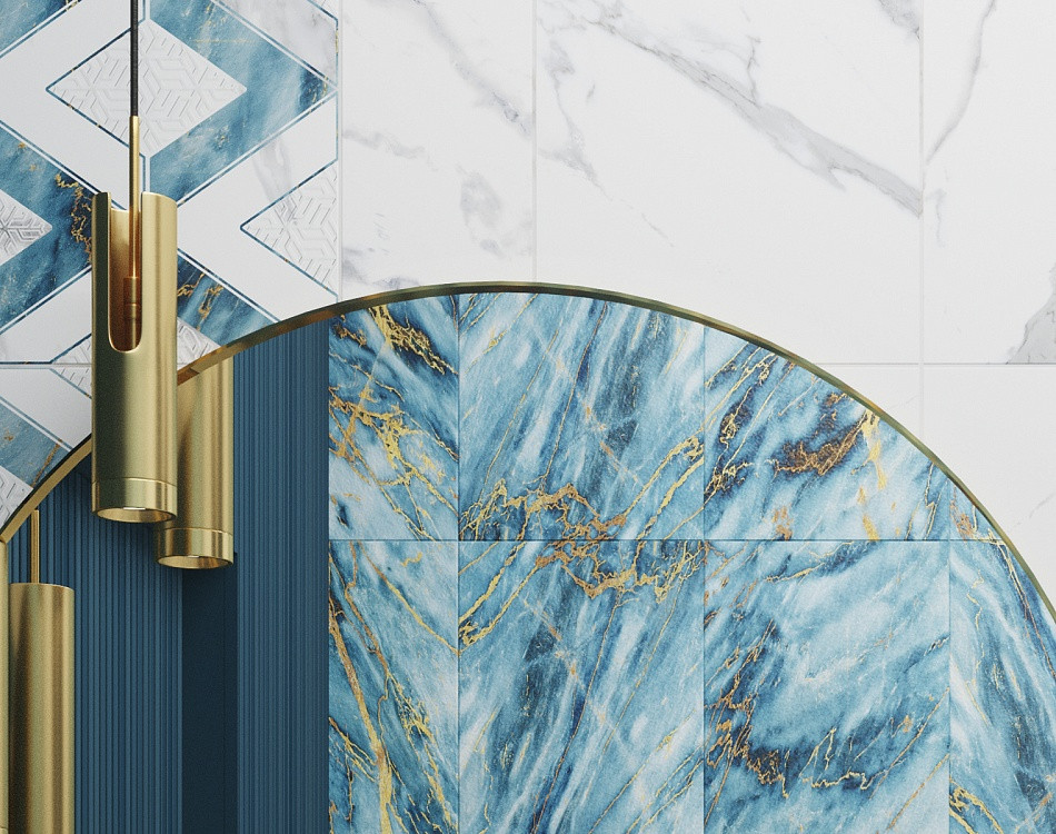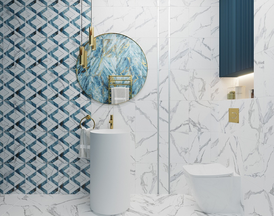 Плитка 40x28 Виченца глянцевая белый синий голубой Axima