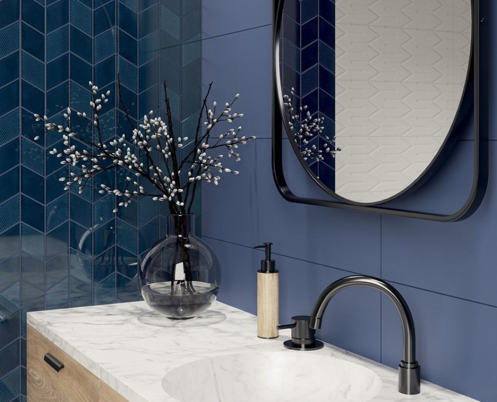 Плитка настенная 75x25 9мм Nightwish Blue Rekt матовая Ceramika Paradyz