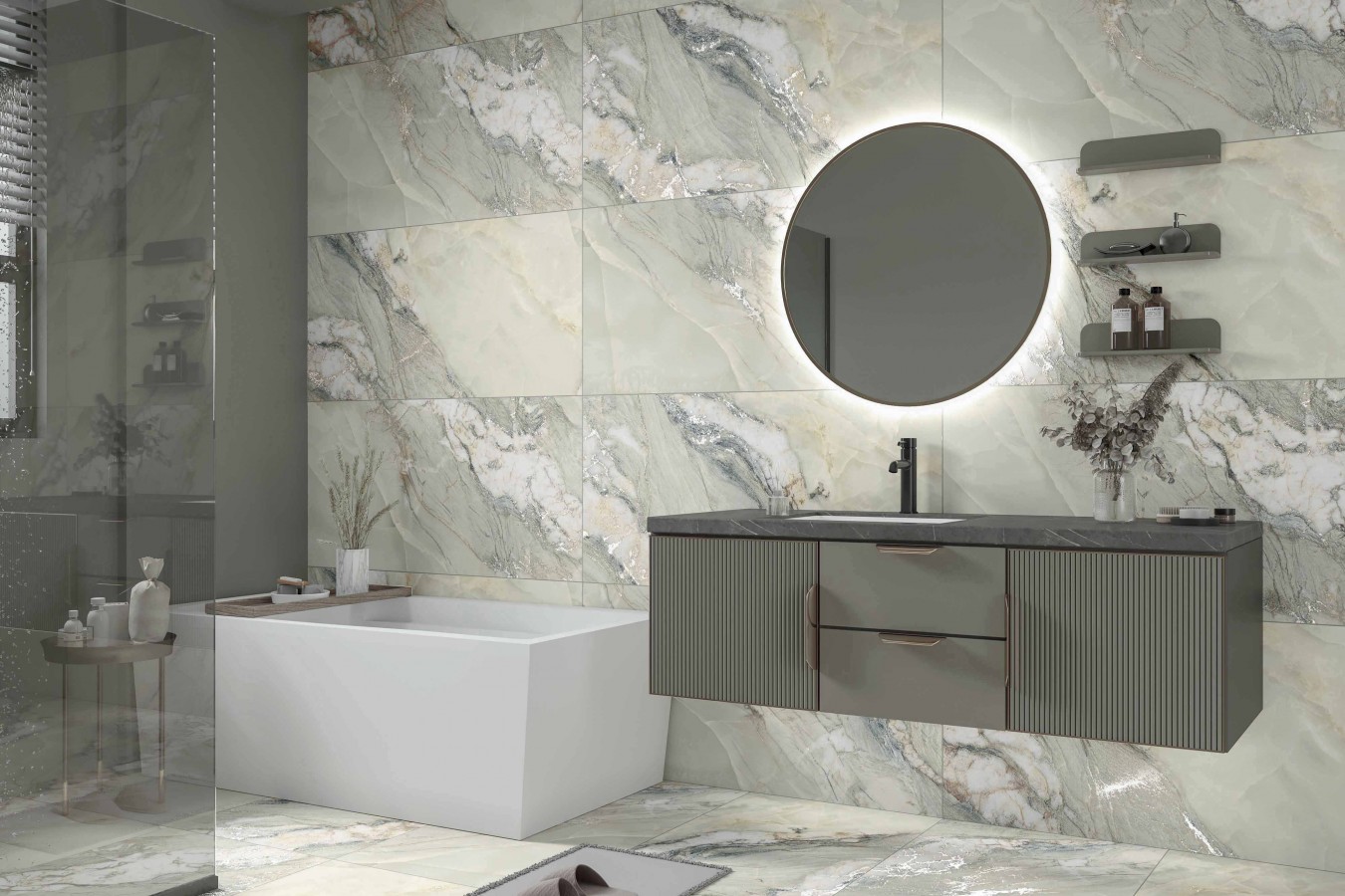Плитка 120x60см из коллекции Onyx Emerald производителя Realistik подходит для использования в интерьерах и повседневной эксплуатации. Плитка универсальна по применению и хорошо сочетается с различными интерьерными решениями. Общий бежевый цветовой тон хорошо сочетается с другими оттенками и подходит для различных интерьерных решений. Поверхность у этой плитки матовая. Текстура рисунка на плитке сделана под оникс.